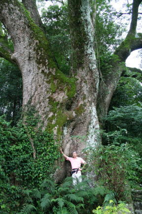 引作の大楠と筆者 推定樹齢1500年(南方熊楠)